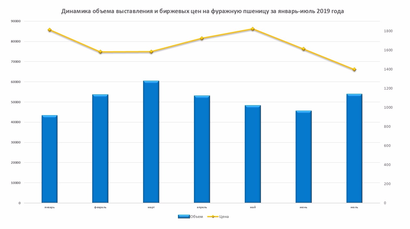 В целом, с начала 2019 года по июль месяц через биржевые торги АО «УзРТСБ» реализовано свыше 350 тыс. тонн фуражной пшеницы, что почти в два раза больше чем за аналогичный период 2018 года. На этом фоне средняя биржевая котировка на различные сорта фуражной пшеницы за рассматриваемый период снизилась на 23%, с 1 810,1 тыс. сумов до 1 394,5 тыс. сумов за тонну.