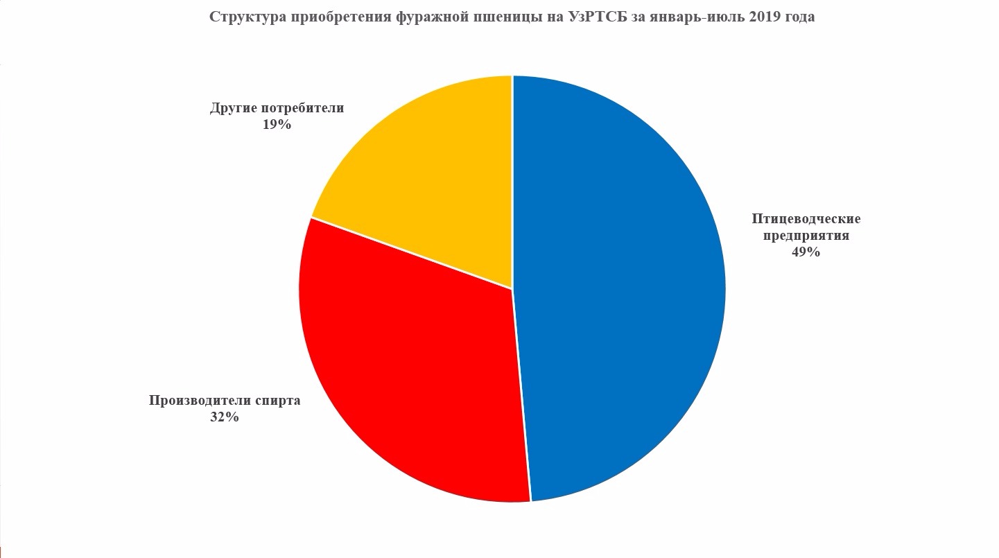 При этом значительную часть биржевого рынка фуражной пшеницы в структуре приобретения заняли птицеводческие предприятия с долей в 49%. Доля производителей спирта составила 32% и других покупателей – 19%.