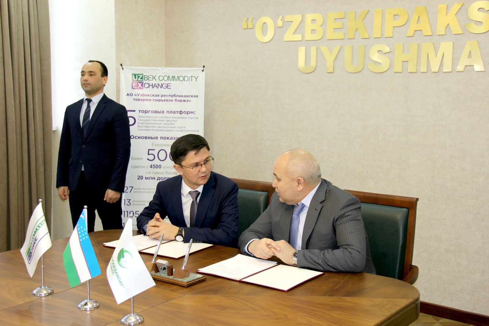 9 января 2020 года между Узбекской республиканской товарно-сырьевой биржей и Ассоциацией “Узбекипаксаноат” подписан меморандум о сотрудничестве. Документ подписали и.о. председателя правления АО “Узбекская республиканская товарно-сырьевая биржа” Зиёвиддин Бадриддинов и председатель правления Ассоциации “Узбекипаксаноат” Бахром Шарипов.
